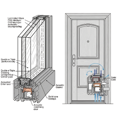 Windows and doors are critical for sealing out sound. Laminated glass windows, with a PVB inter-layer, significantly reduce outside noise. Double or triple glazing with air gaps also contributes to sound reduction. For doors, solid cores and specialized acoustic seals and gaskets create a tight, soundproof barrier, along with effective thresholds and door sweeps.
